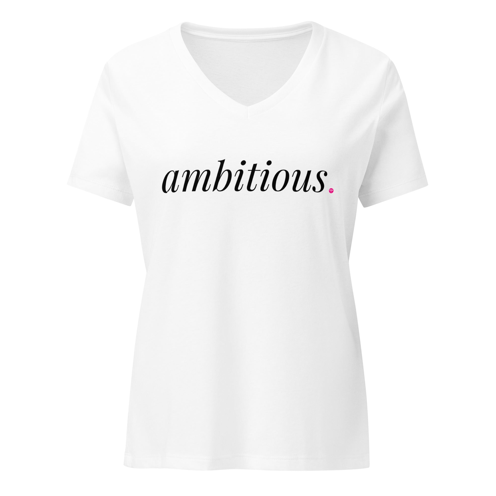 Embrace ultimate comfort with this v-neck tee. Its soft fabric and relaxed fit make it ideal for a polished everyday look, with the V-neck adding a touch of style. Throw it under an oversized blazer and tag MBAchic on social media.